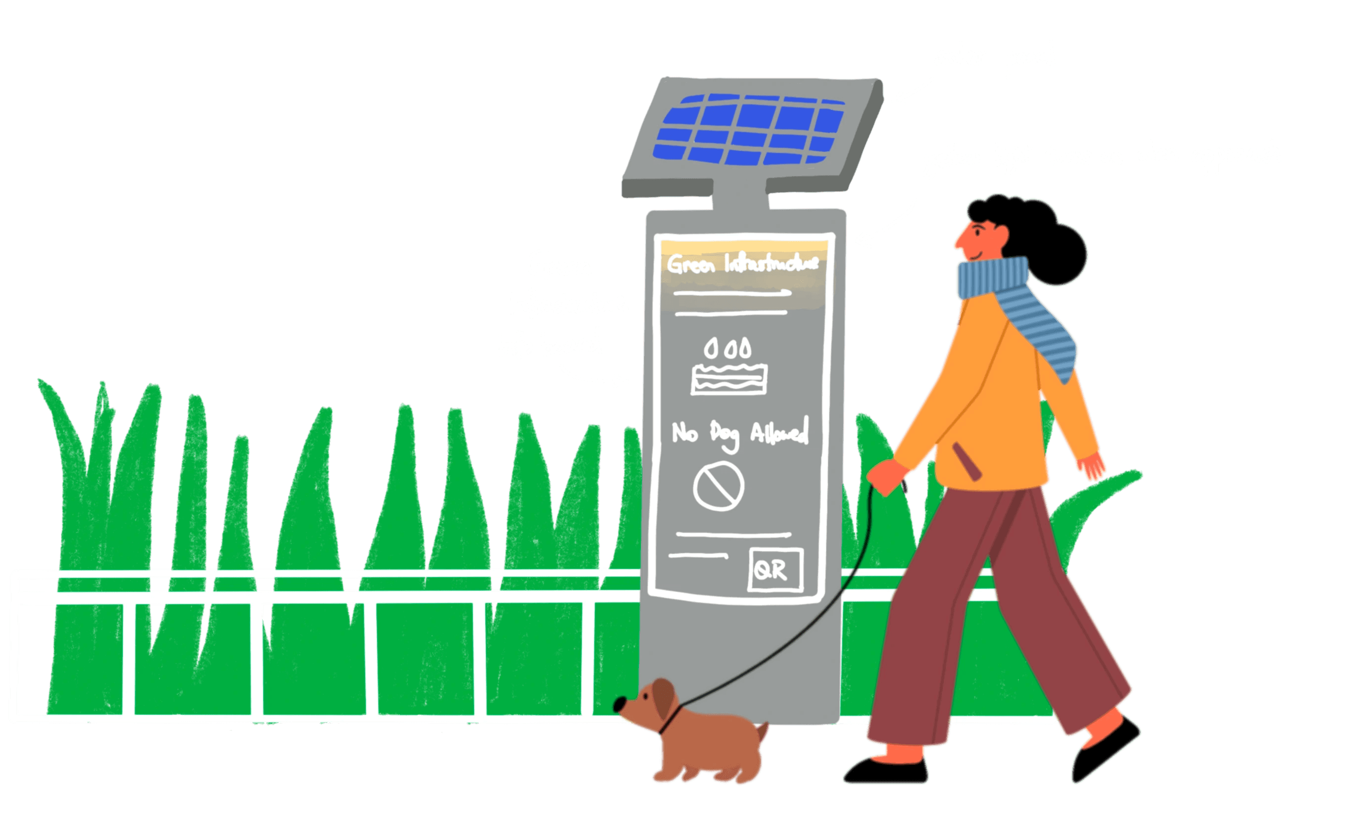 Dog walkers in NYC often cannot clearly identify where Green Infrastructure (GI) areas are located due to unclear boundaries and insufficient signage. As a result, pets may accidentally enter GI zones or urinate in these ecological installations, causing damage and reducing their environmental function. There is a need for a clearer, more accessible way for dog walkers to recognize and avoid GI spaces during daily routines.