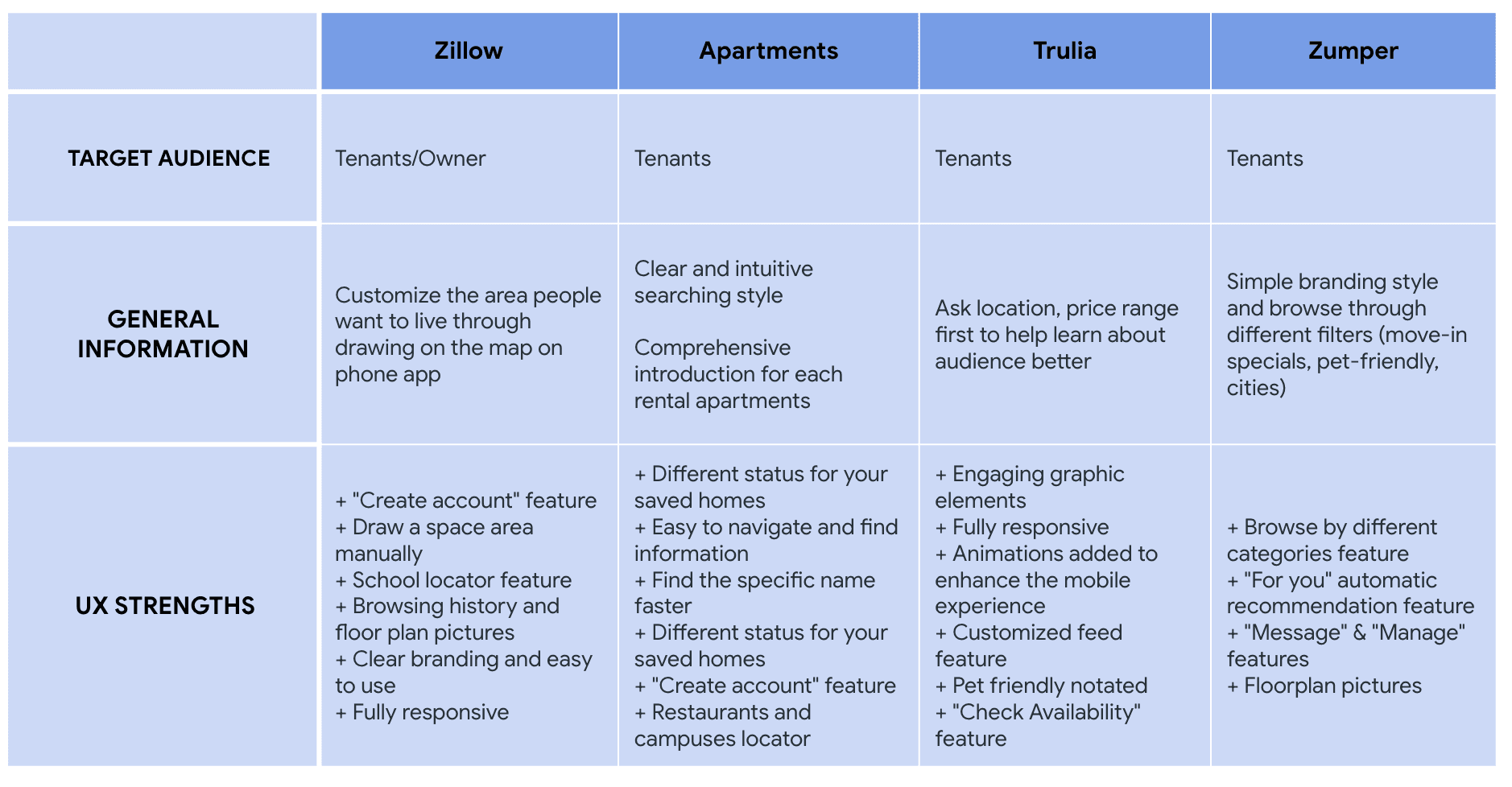 I conducted a competitive audit to evaluate the strengths of both direct and indirect competitors.